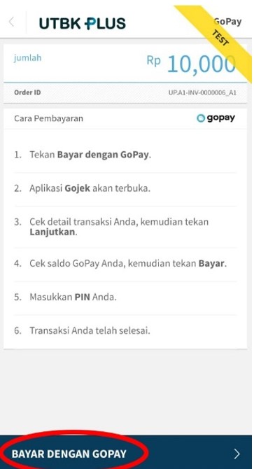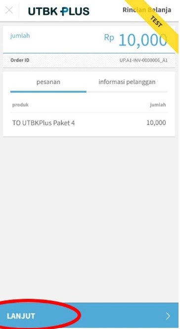 Pilih Lanjut untuk melaksanakan transaksi pembayaran paket try out.